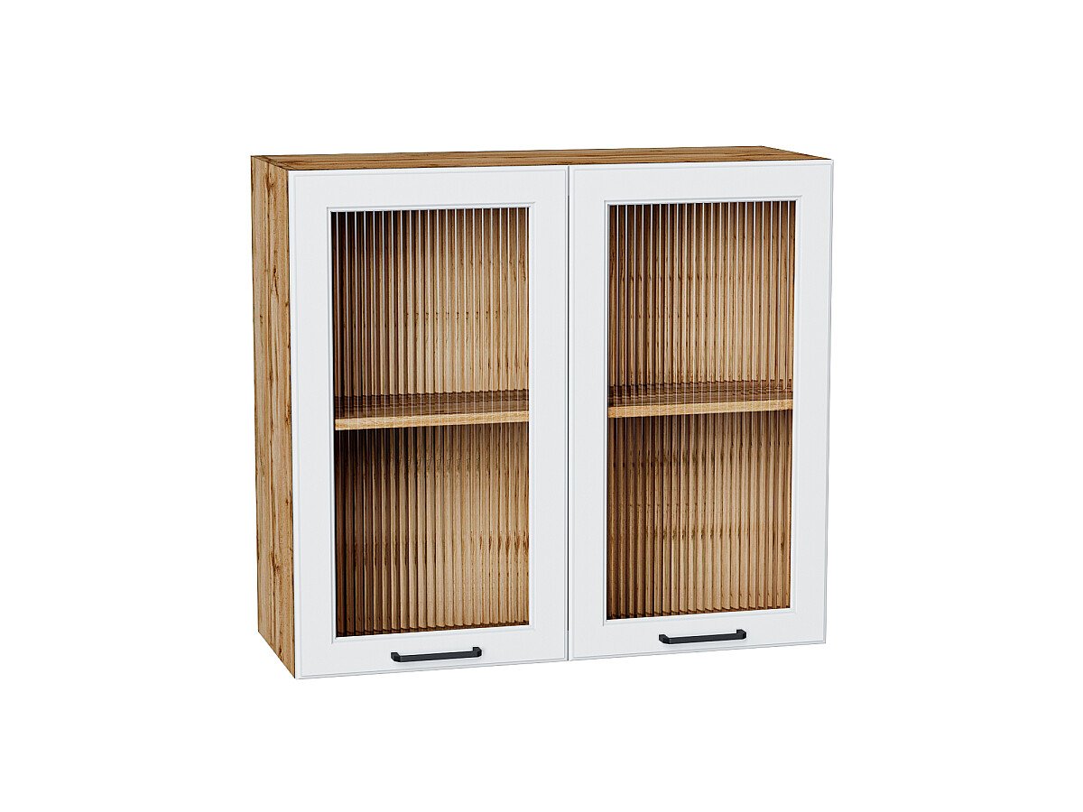 Шкаф верхний с 2-мя остекленными дверцами Барселона 716*800*324 Белый / Дуб Вотан