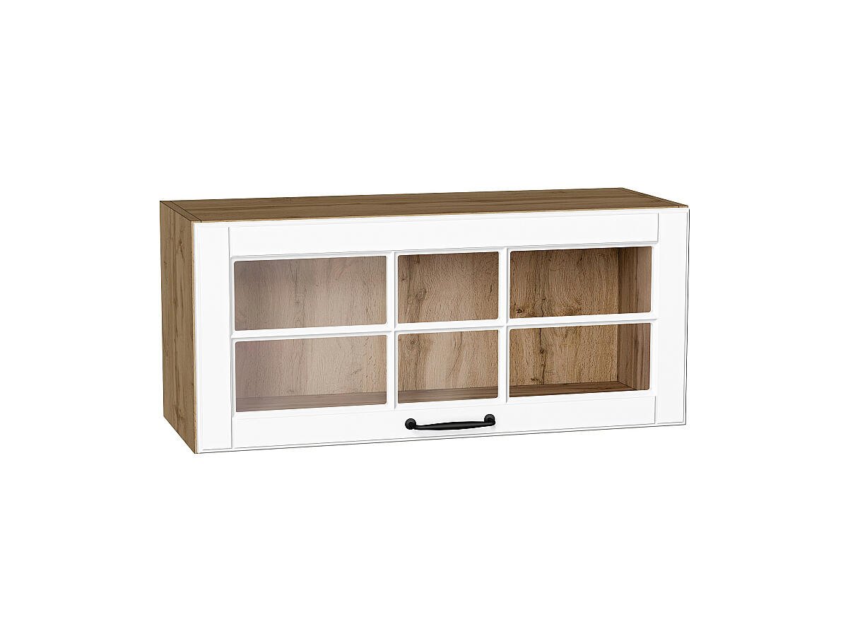 Шкаф верхний горизонтальный остекленный Дублин 358*800*318 Special White / Дуб Вотан