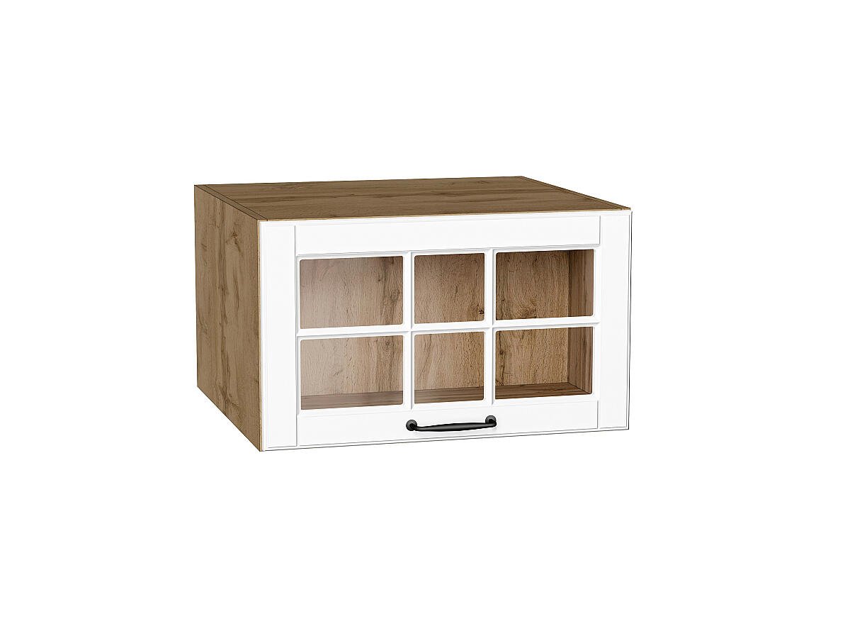 Шкаф верхний горизонтальный остекленный глубокий Дублин 358*600*574 Special White / Дуб Вотан