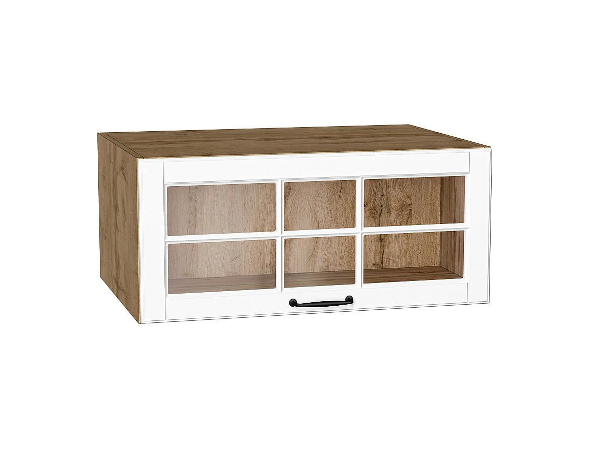 Шкаф верхний горизонтальный остекленный глубокий Дублин 358*800*574 Special White / Дуб Вотан