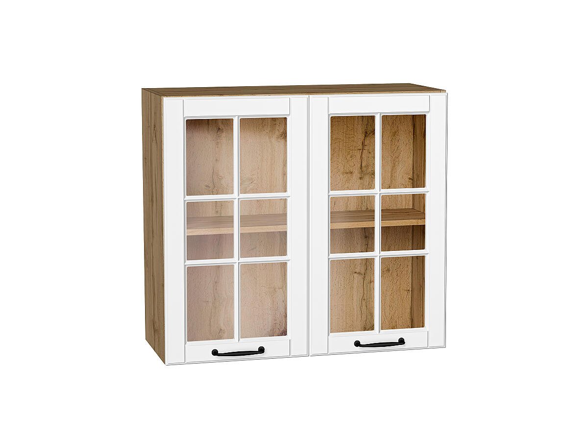 Шкаф верхний с 2-мя остекленными дверцами Дублин 716*800*318 Special White / Дуб Вотан