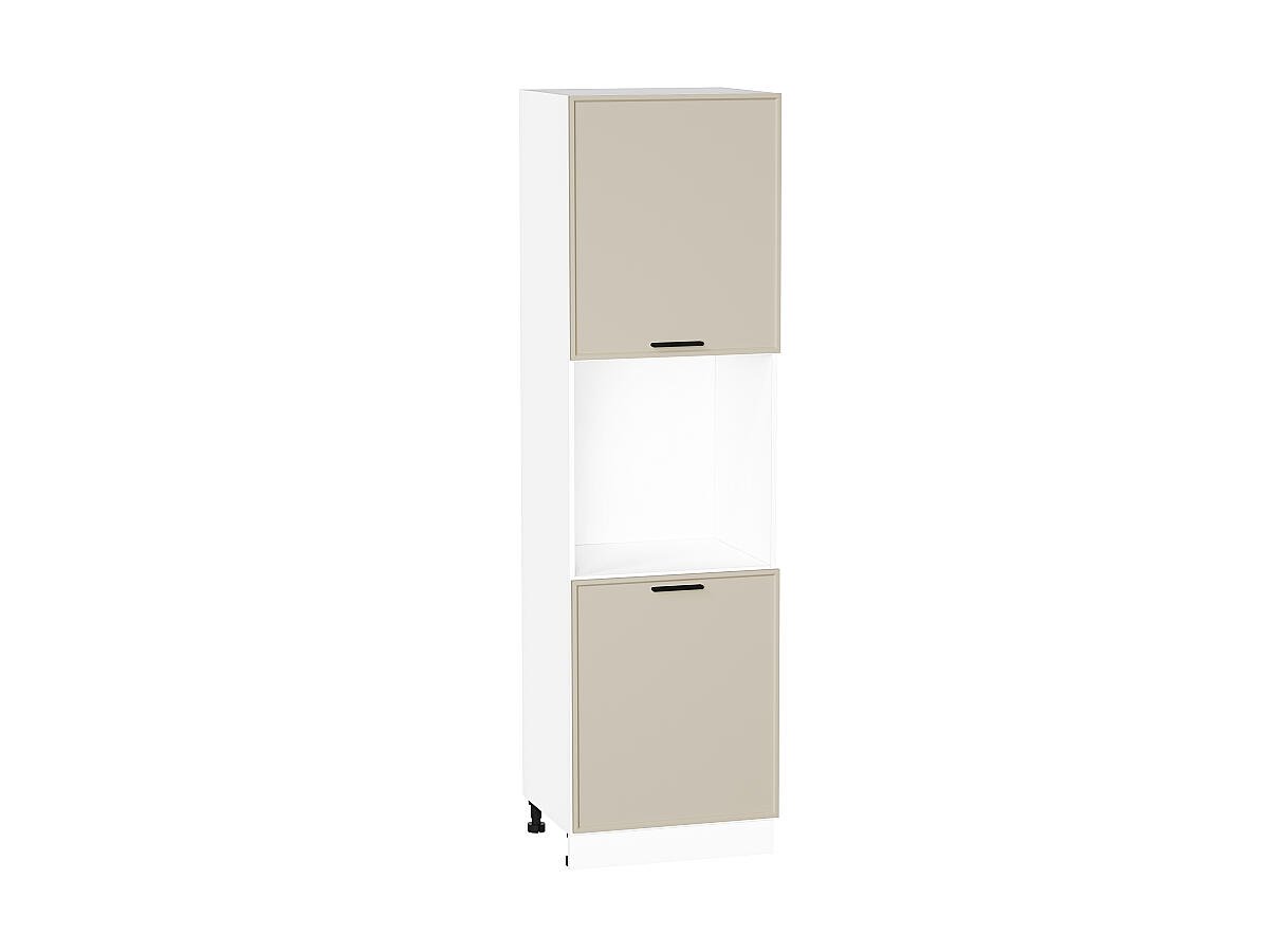 Шкаф пенал с 2-мя дверцами под технику Фрейм 2132*600*580 Cream Silk / Белый