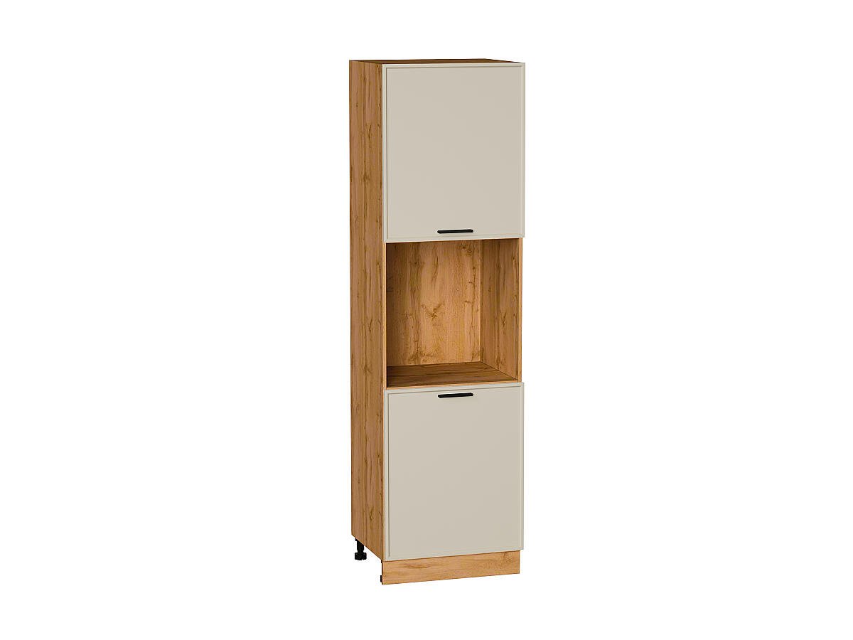 Шкаф пенал с 2-мя дверцами под технику Фрейм 2132*600*580 Cream Silk / Дуб Вотан