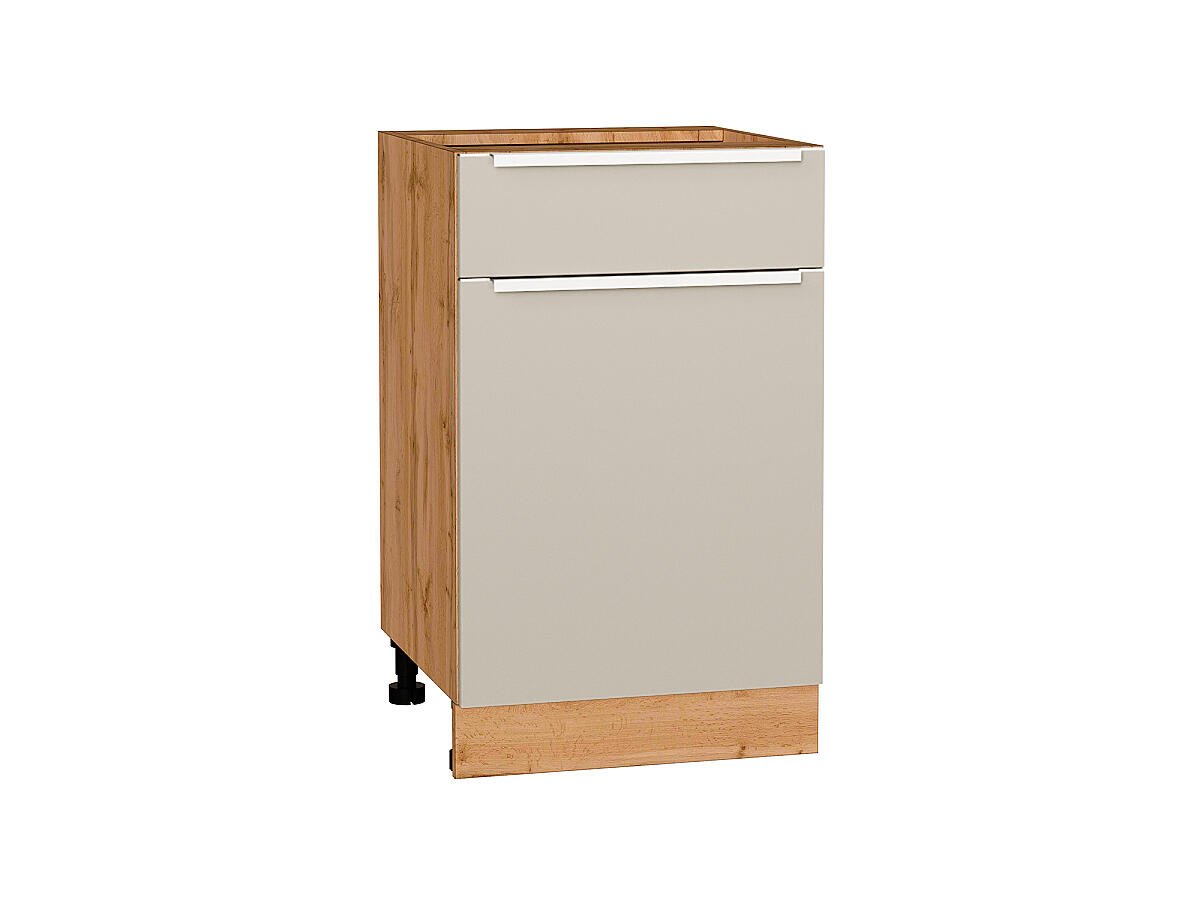 Шкаф нижний с 1-ой дверцей и ящиком Фьюжн 816*500*480 Cream Silk / Дуб Вотан
