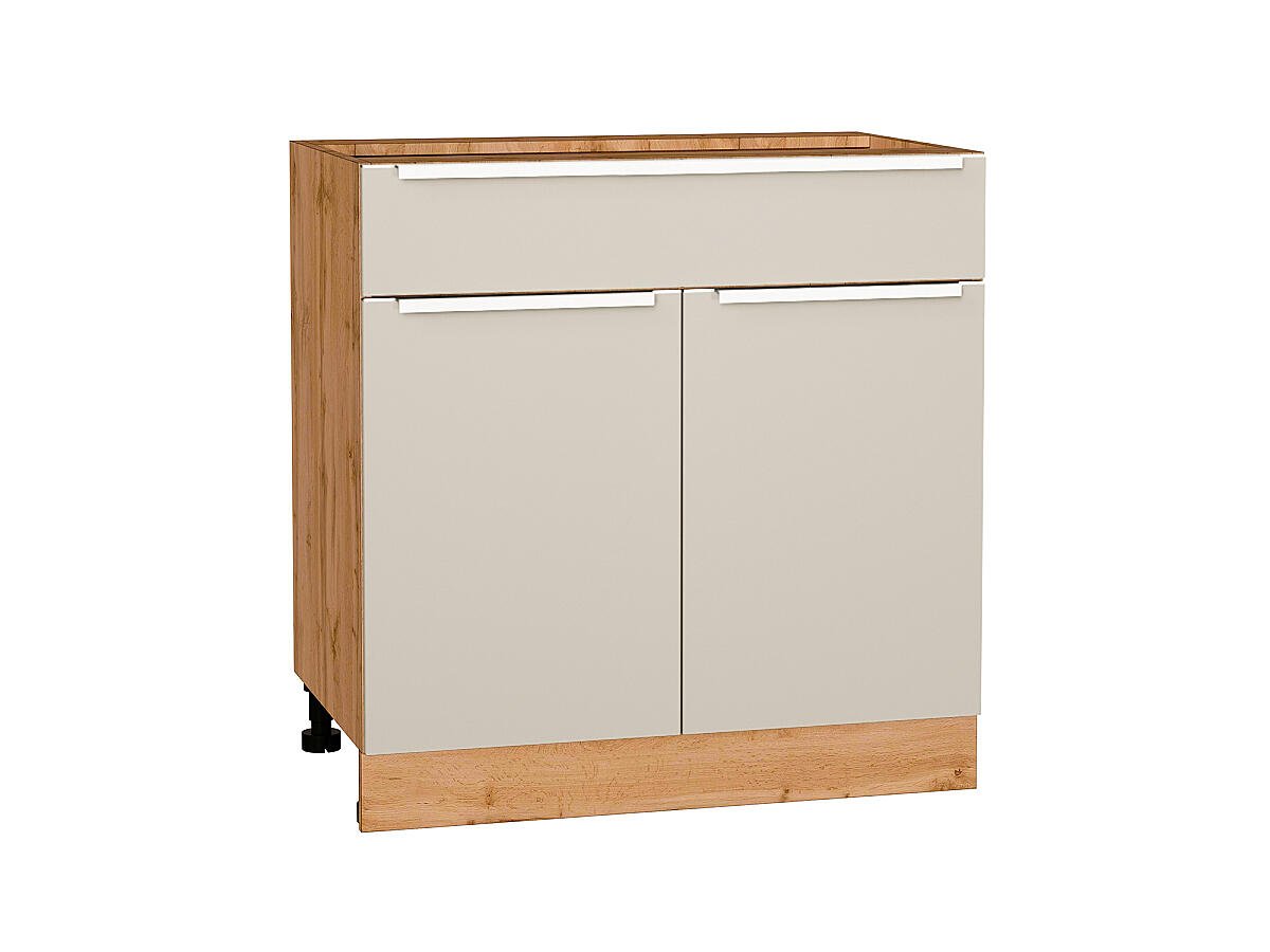 Шкаф нижний с 2-мя дверцами и ящиком Фьюжн 816*800*480 Cream Silk / Дуб Вотан