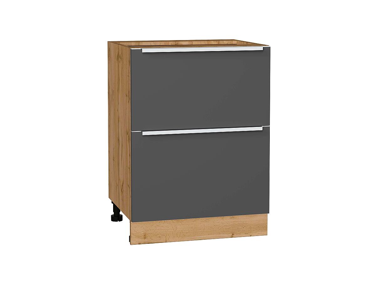 Шкаф нижний с 2-мя ящиками Фьюжн 816*600*480 Stormy Silk / Дуб Вотан