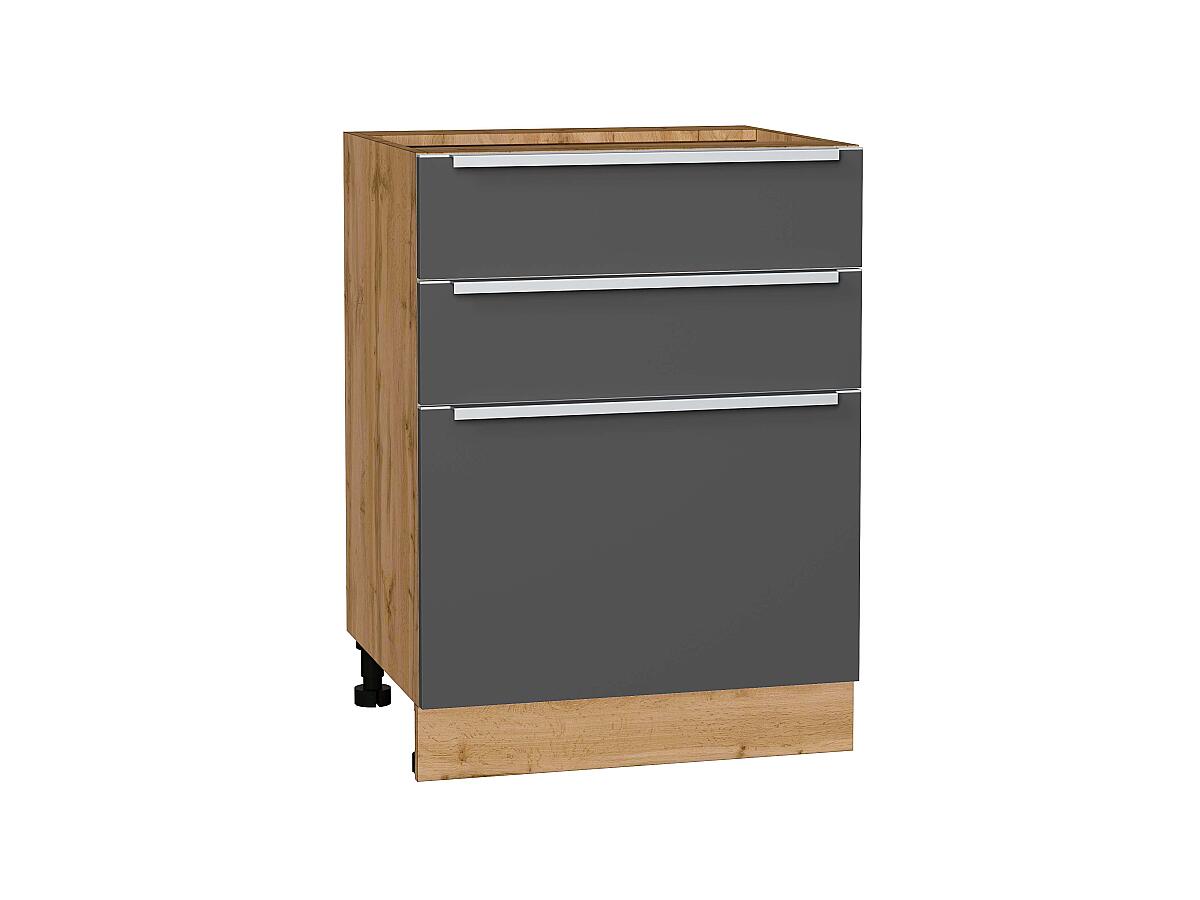 Шкаф нижний с 3-мя ящиками Фьюжн 816*600*480 Stormy Silk / Дуб Вотан
