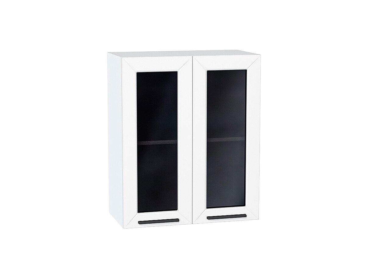 Шкаф верхний с 2-мя остекленными дверцами Глетчер 716*600*318 Айленд Силк / Белый