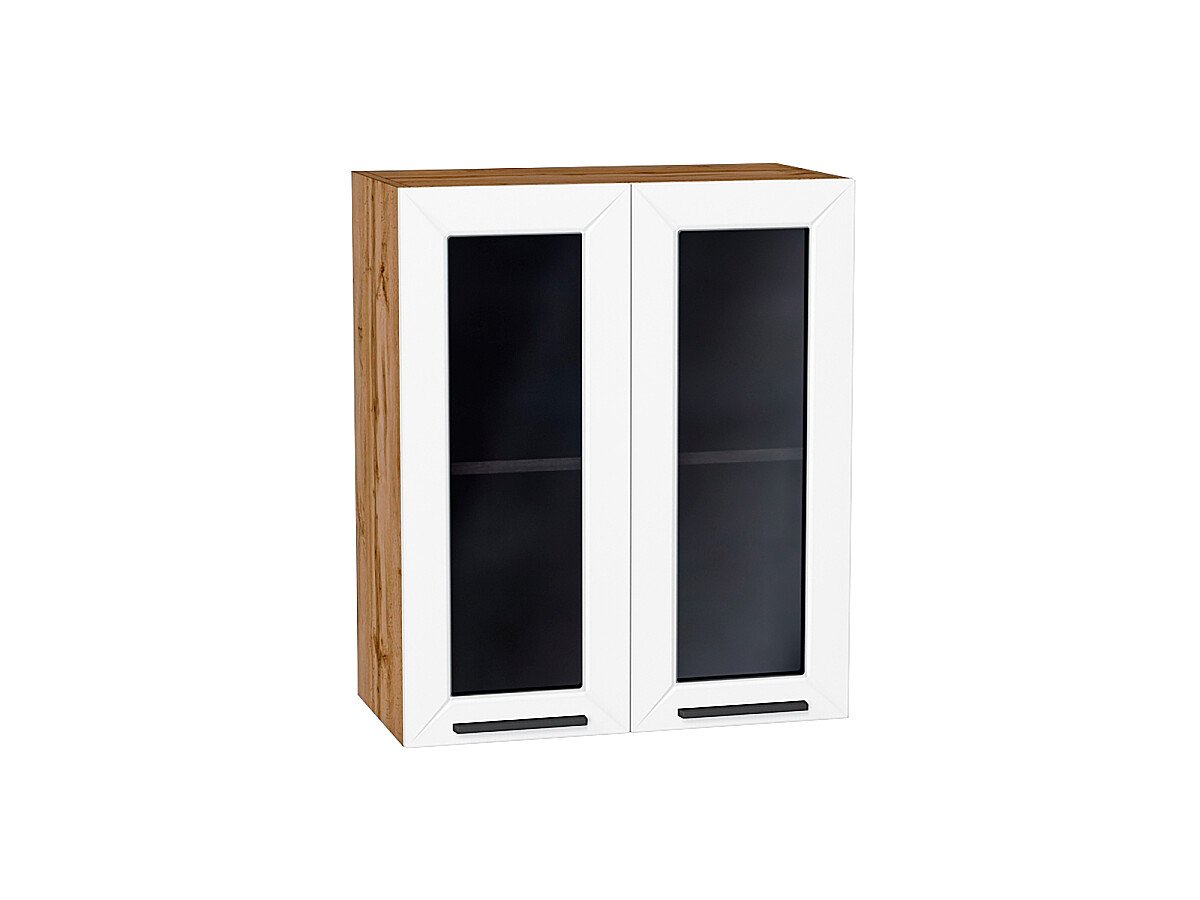 Шкаф верхний с 2-мя остекленными дверцами Глетчер 716*600*318 Айленд Силк / Дуб Вотан