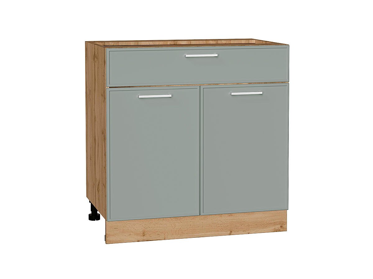 Шкаф нижний с 2-мя дверцами и ящиком Квадро 816*800*481 Аквамарин / Дуб Вотан