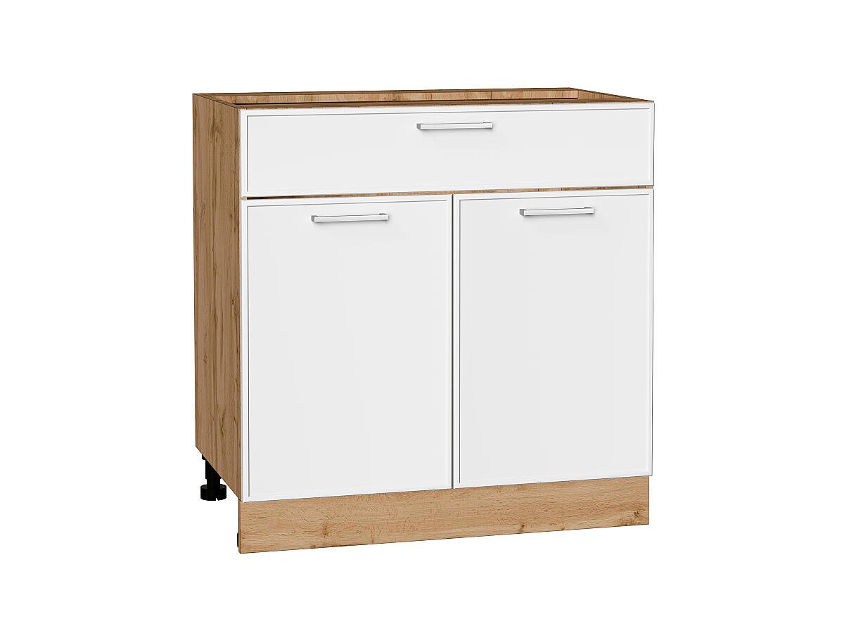 Шкаф нижний с 2-мя дверцами и ящиком Квадро 816*800*481 Белый / Дуб Вотан