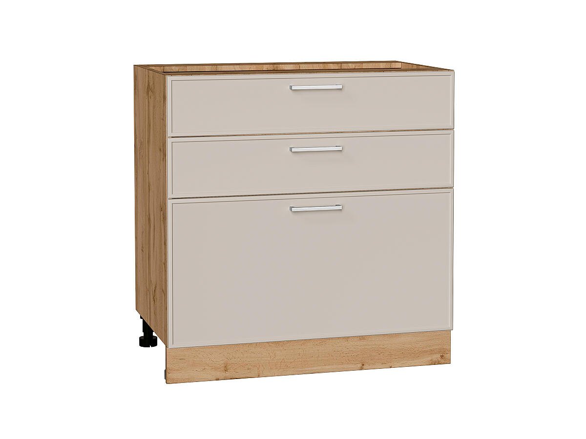 Шкаф нижний с 3-мя ящиками Квадро 816*800*481 Кашемир / Дуб Вотан