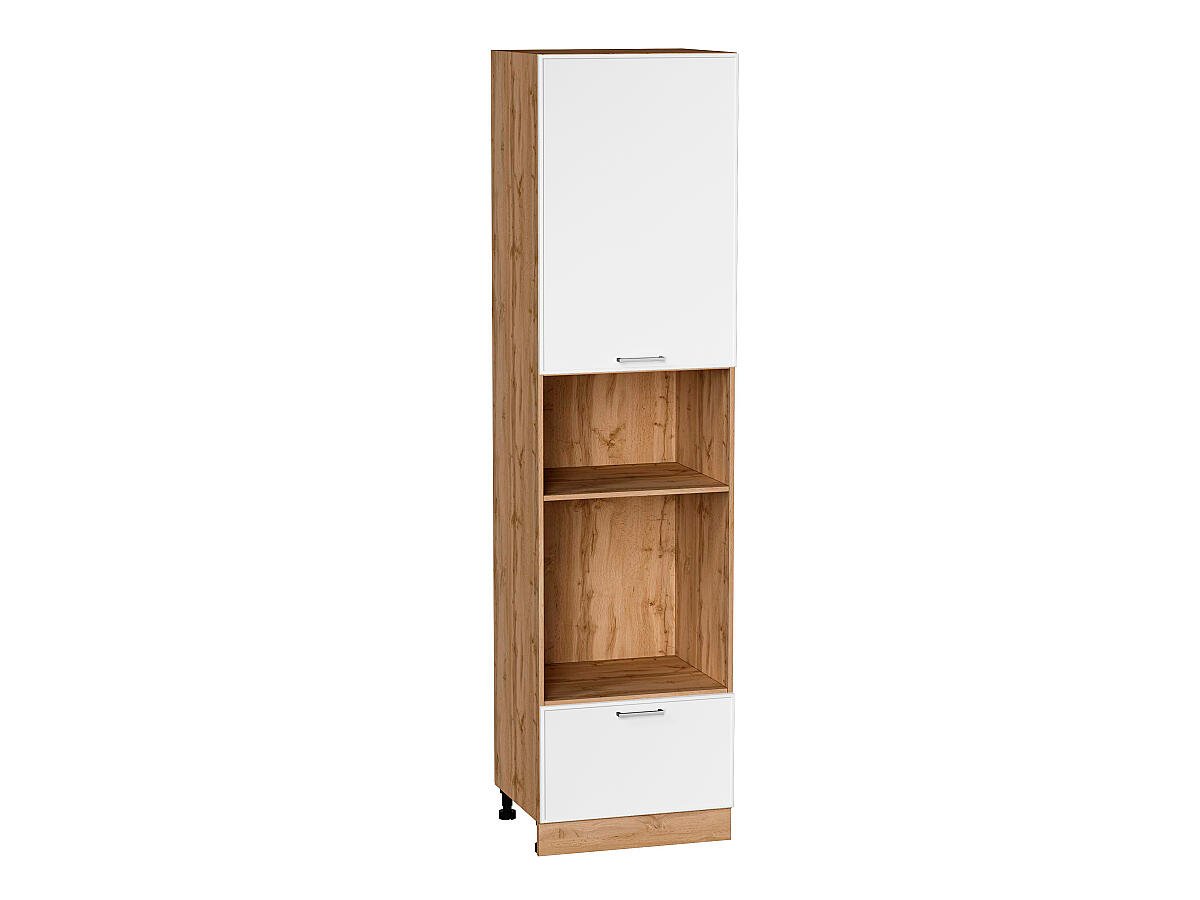 Шкаф пенал с 1-ой дверцей и ящиком под технику Квадро 2336*600*577 Белый / Дуб Вотан