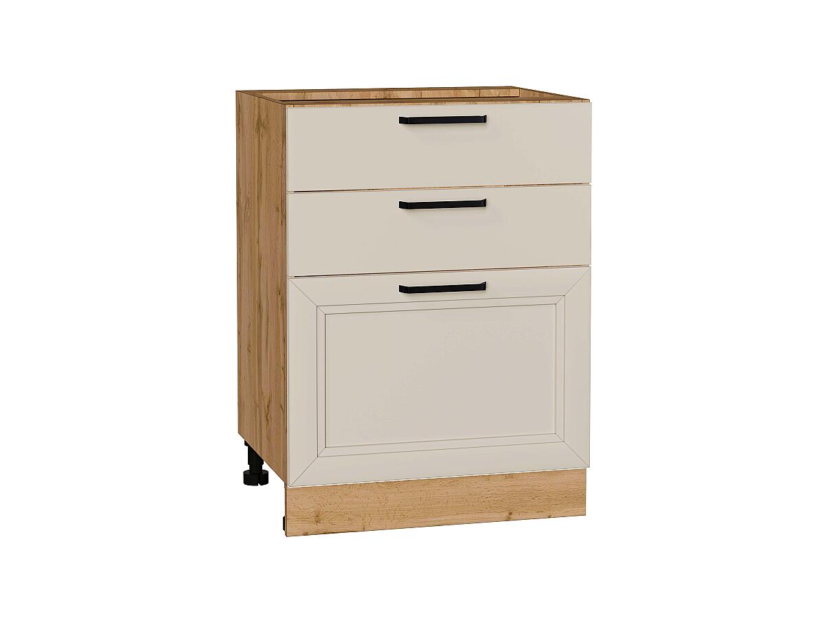 Шкаф нижний с 3-мя ящиками Нео 816*600*480 Cream Silk / Дуб Вотан