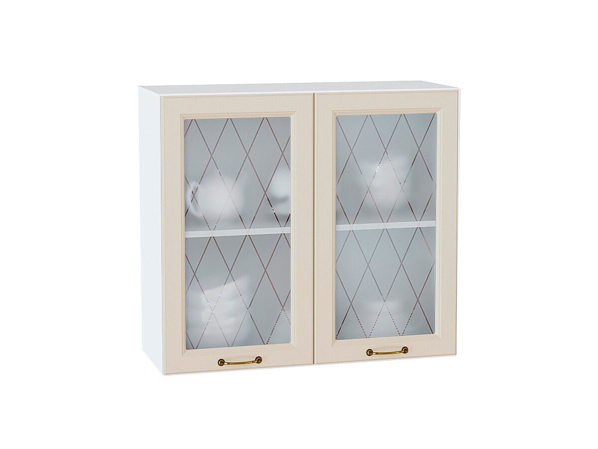 Шкаф верхний с 2-мя остекленными дверцами Ницца 716*800*318 Агат / Белый