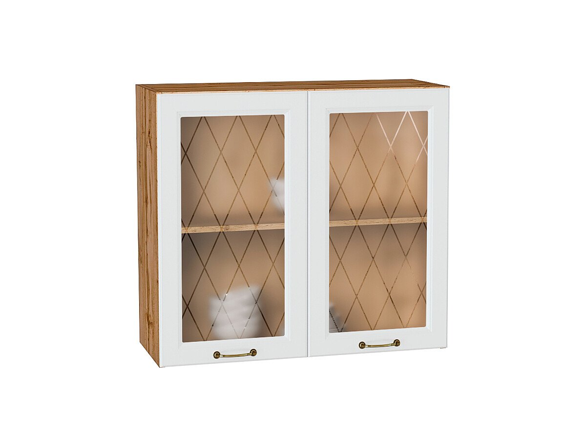 Шкаф верхний с 2-мя остекленными дверцами Ницца 716*800*318 Белый / Дуб Вотан