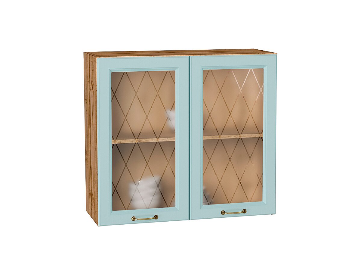 Шкаф верхний с 2-мя остекленными дверцами Ницца 716*800*318 Голубой / Дуб Вотан