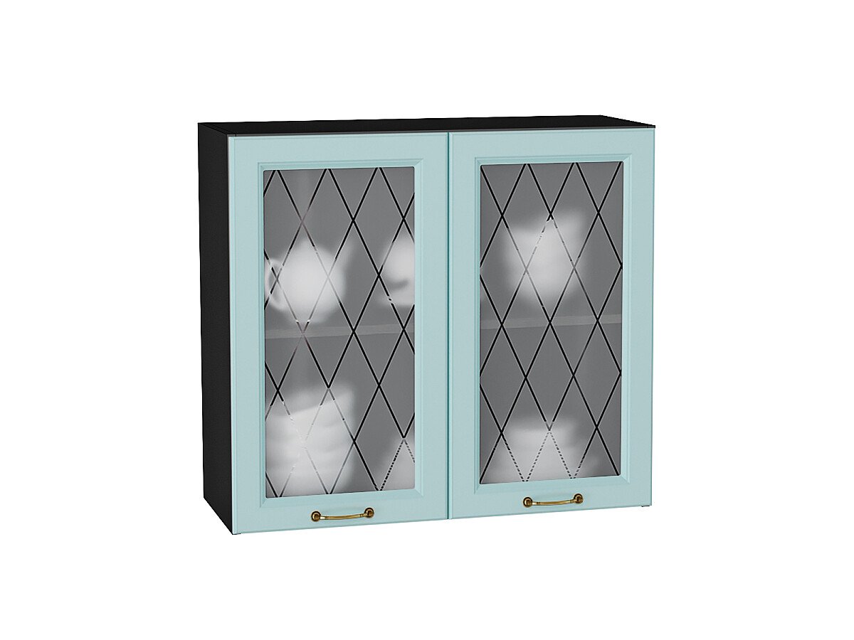 Шкаф верхний с 2-мя остекленными дверцами Ницца 716*800*318 Голубой / Graphite