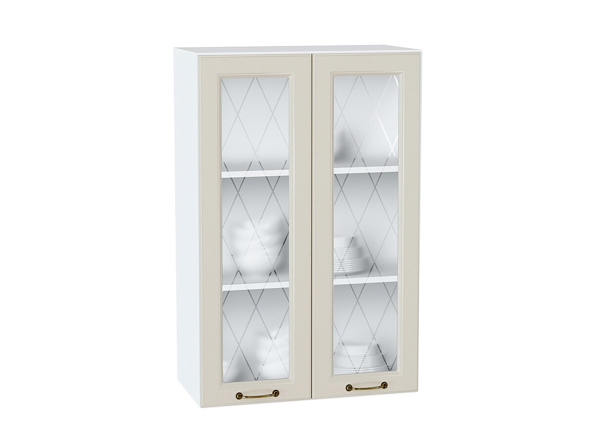 Шкаф верхний с 2-мя остекленными дверцами Ницца 920*600*318 Агат / Белый