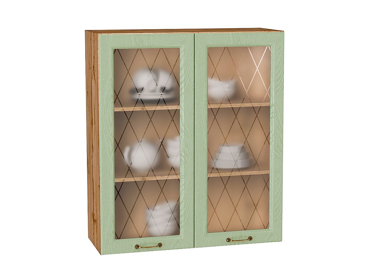 Шкаф верхний с 2-мя остекленными дверцами Ницца 920*800*318 Дуб оливковый / Дуб Вотан