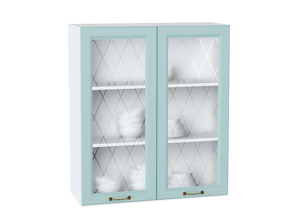 Шкаф верхний с 2-мя остекленными дверцами Ницца 920*800*318 Голубой / Белый