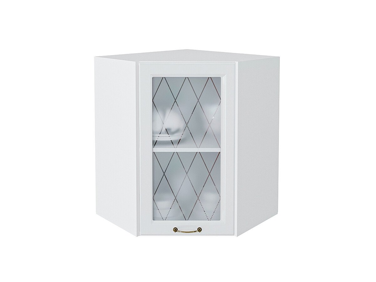 Шкаф верхний угловой остекленный Ницца 716*600*600 Белый / Белый