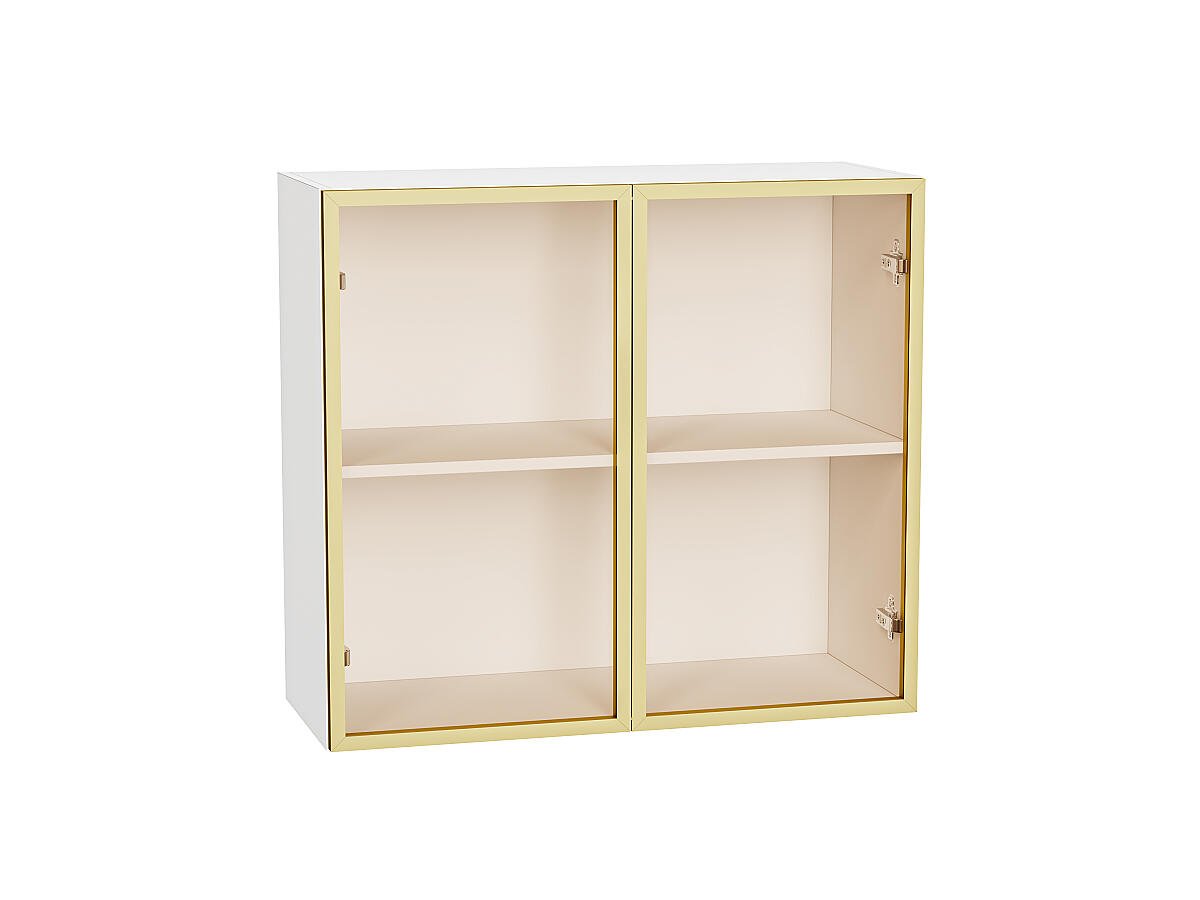 Шкаф верхний с 2-мя остекленными дверцами 716*800*322 Золотой / Белый