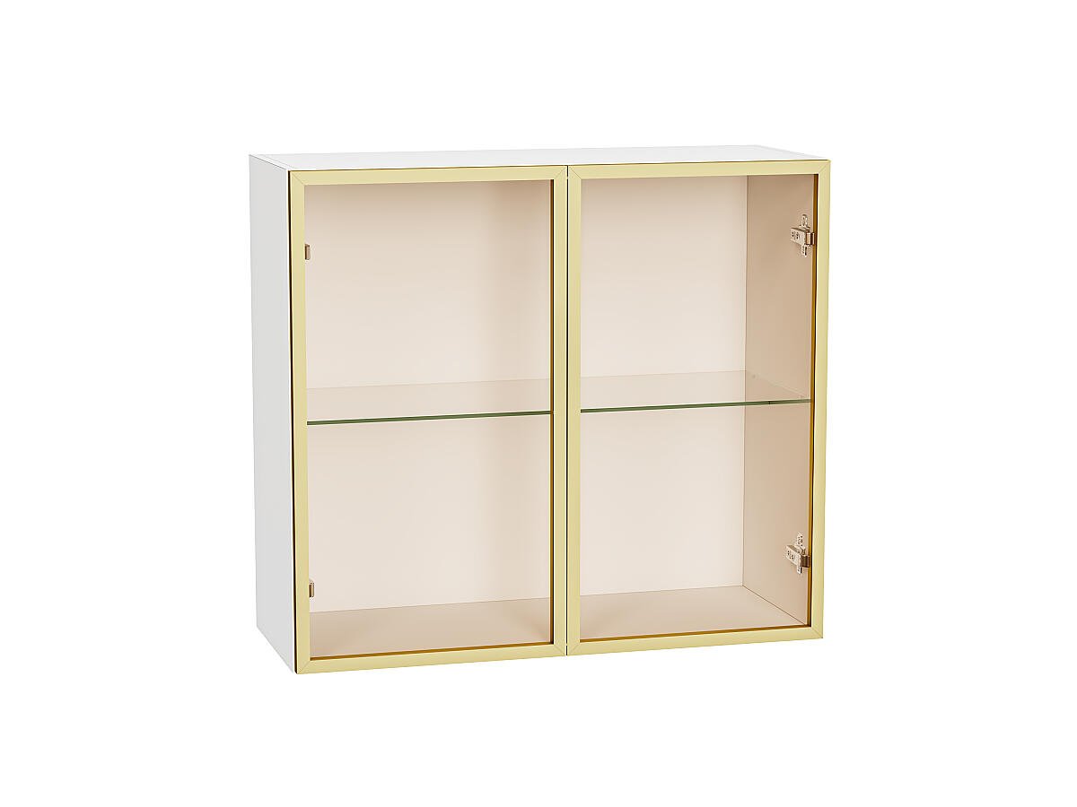Шкаф верхний с 2-мя остекленными дверцами 716*800*322 Золотой / Белый