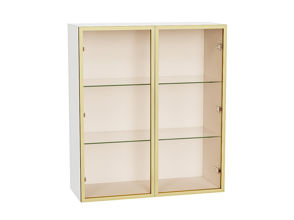Шкаф верхний с 2-мя остекленными дверцами 920*800*322 Золотой / Белый