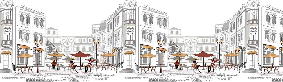 Кухонный фартук «Уличное кафе» - яркая и качественная стеновая панель для кухни. Закрывает все неровности и дефекты поверхности, на которые он монтируется.