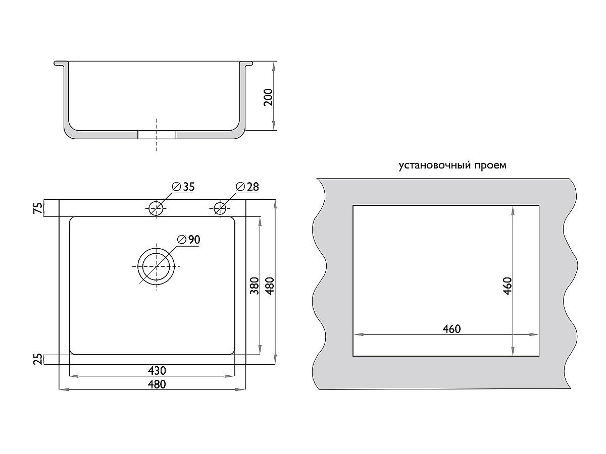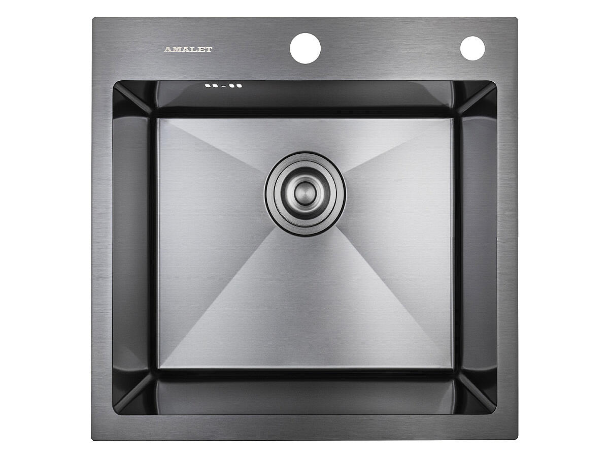 Кухонная врезная мойка с одной прямоугольной чашей. Подходит для тумб от 500 мм. У чаши есть шумопоглощающая обработка. Площадка под смеситель и дозатор в верхней части мойки, выпускается с переливом для воды в чаше.