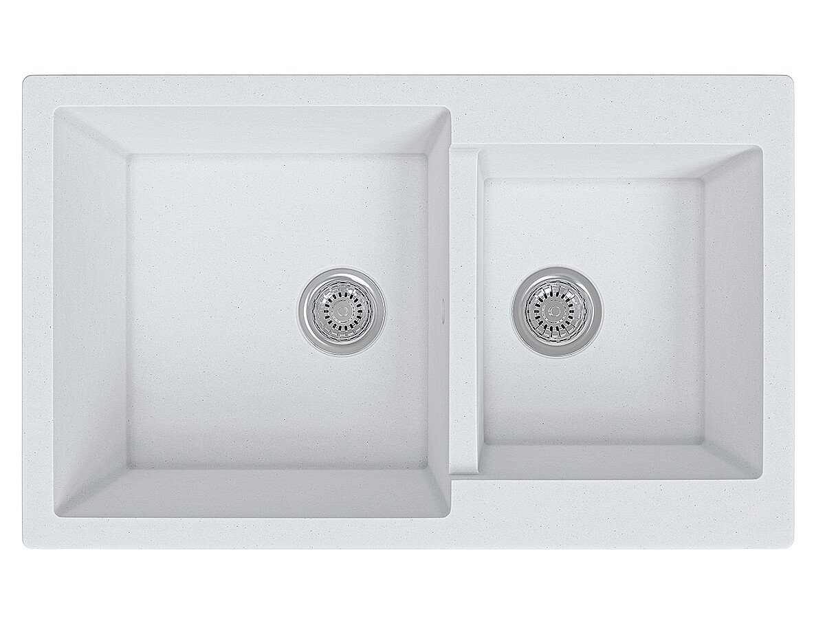 Прямоугольная реверсивная мойка с двумя чашами. Подходит для тумб от 800 мм.