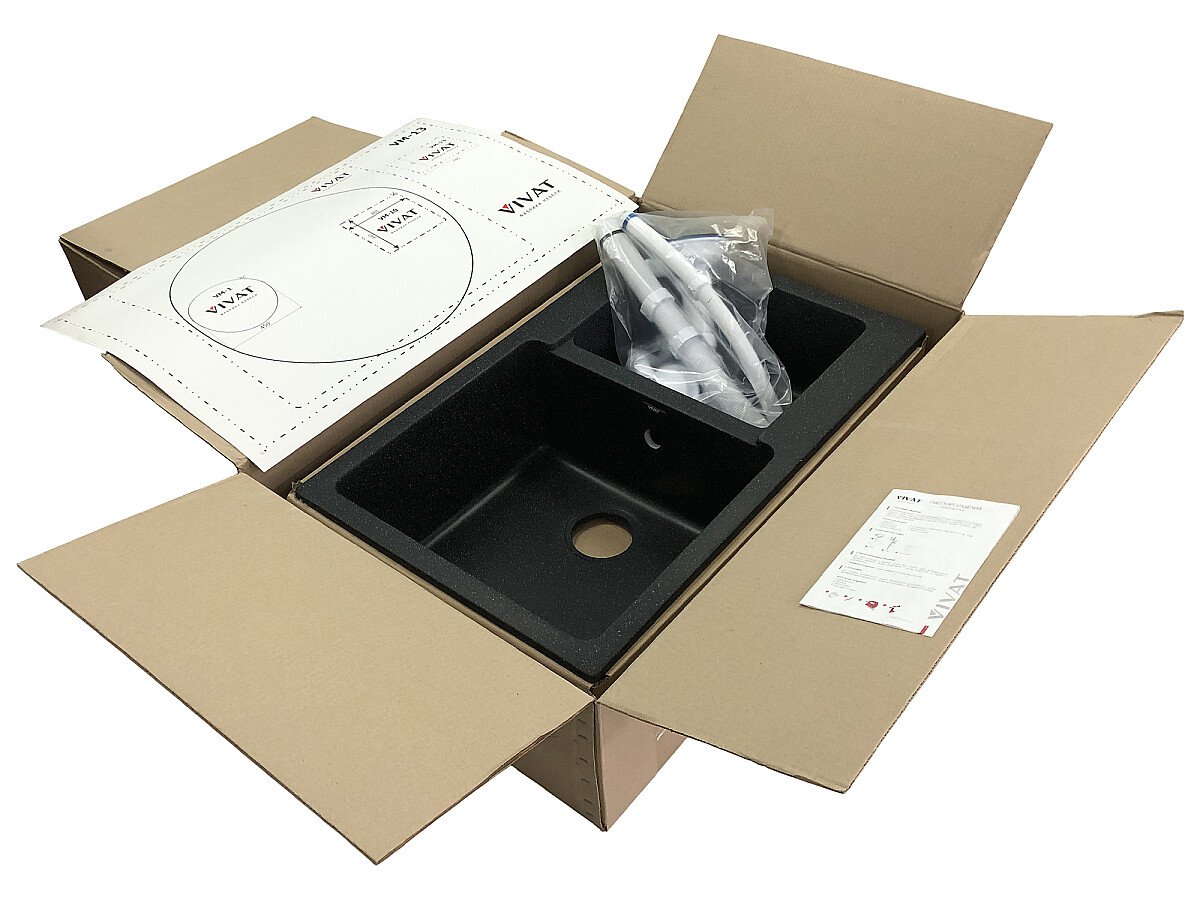 В комплект входит: сифон с гофрой и установочный шаблон.
